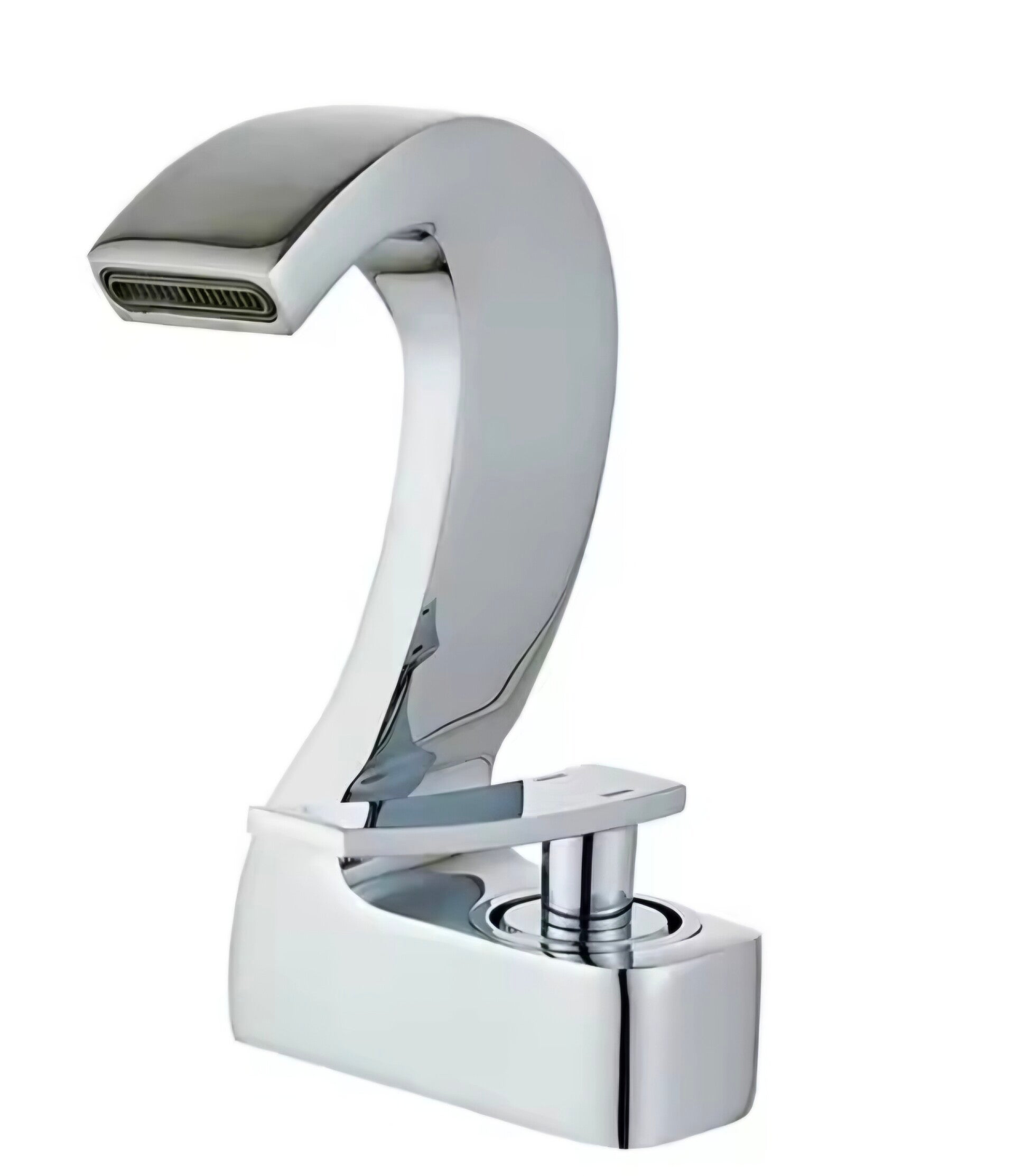 Die markante Bogenform macht die Armatur zu einem architektonischen Element – ruhig, kraftvoll und zeitlos.